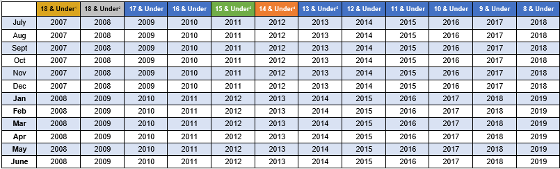 USAV Age Definition Chart 2026-27